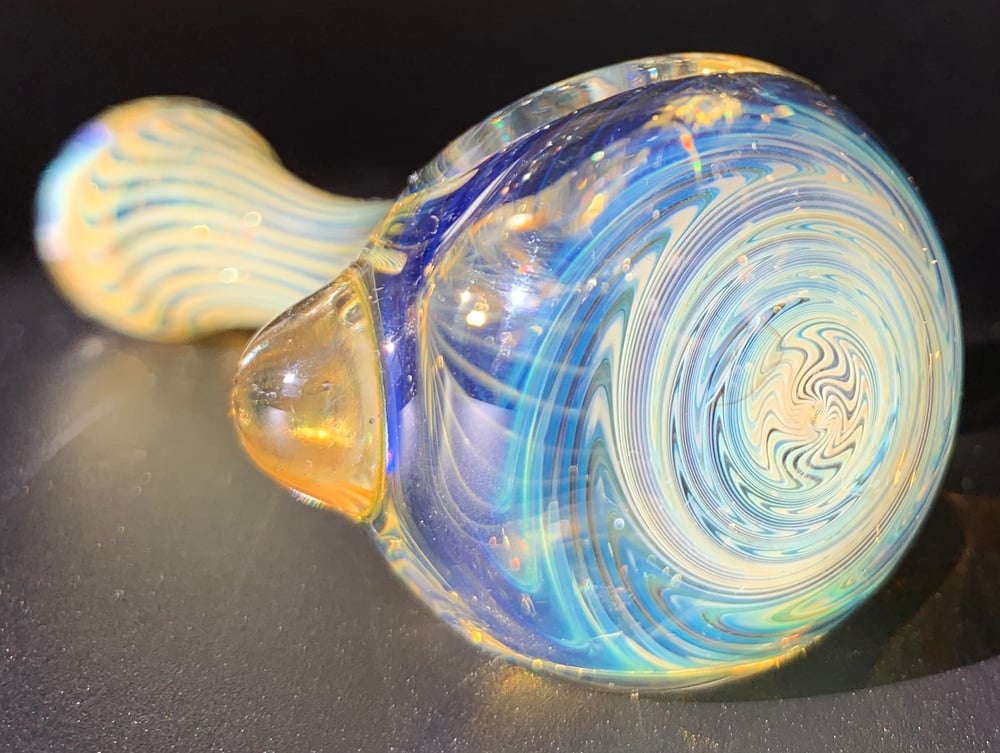 • Fumed borosilicate glass ( as the pipe gets used blues/greens from fume will start to pop and stand out as it gets filled in )